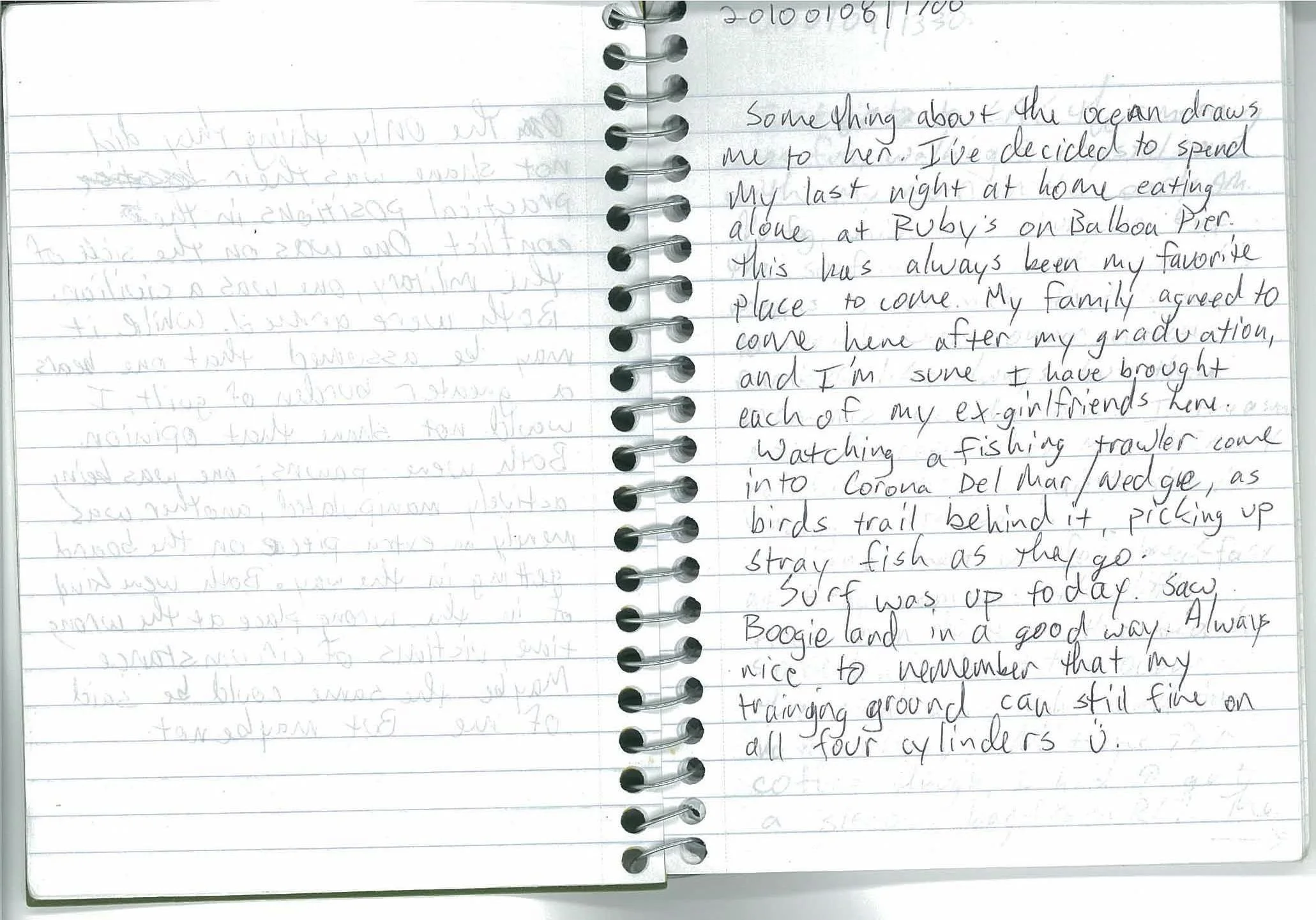 Something about the ocean draws me to her. I’ve decided to spend my last night at home eating alone at Ruby’s no Balboa Pier. This always been my favorite place to come. My family agreed to come here after my graduation, and I’m sure I have brought each of my ex-girlfriends here.