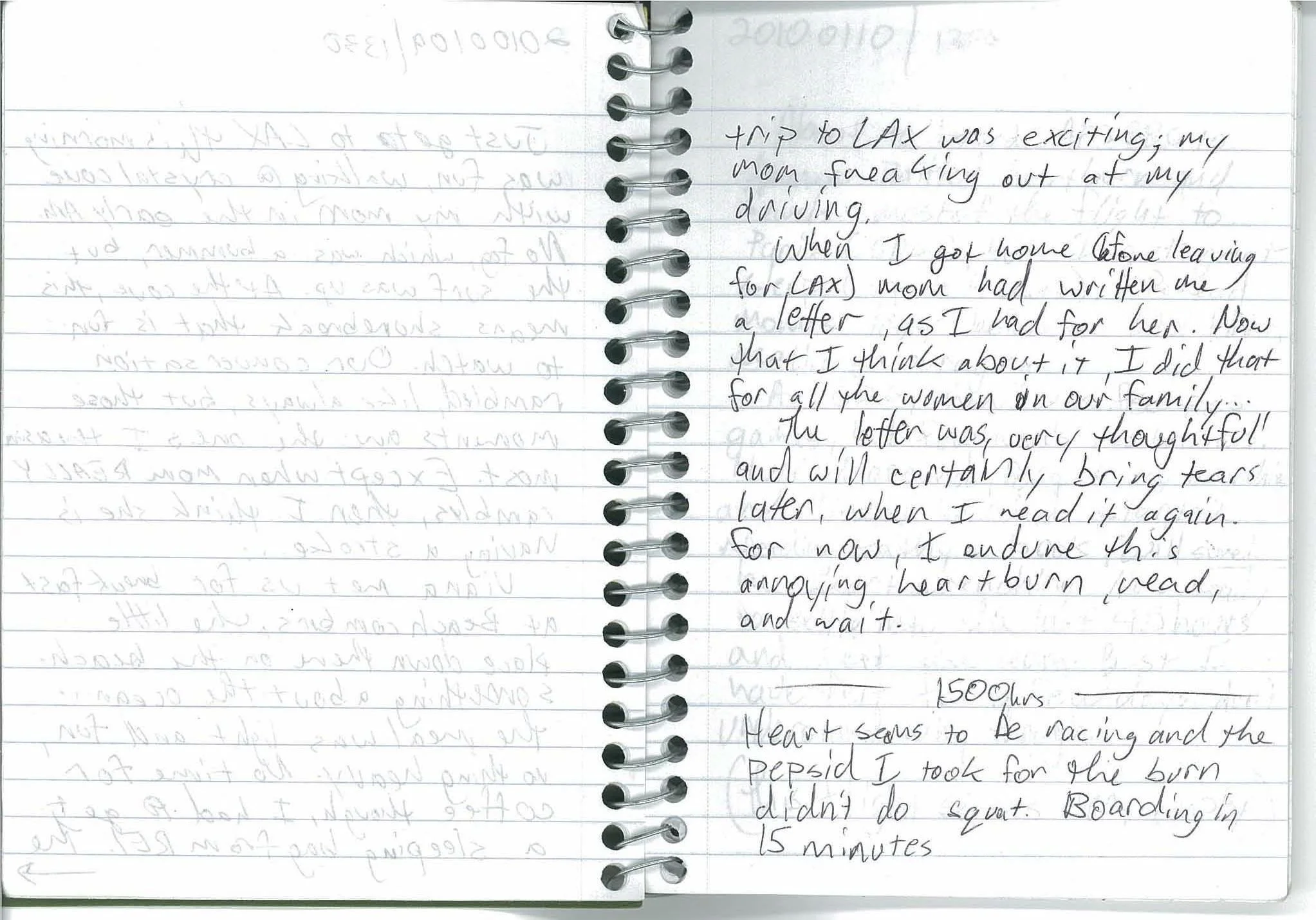 When I got home (before leaving for LAX) mom had written me a letter, as I had for her. Now that I think about it, I did that for all the women in our family…