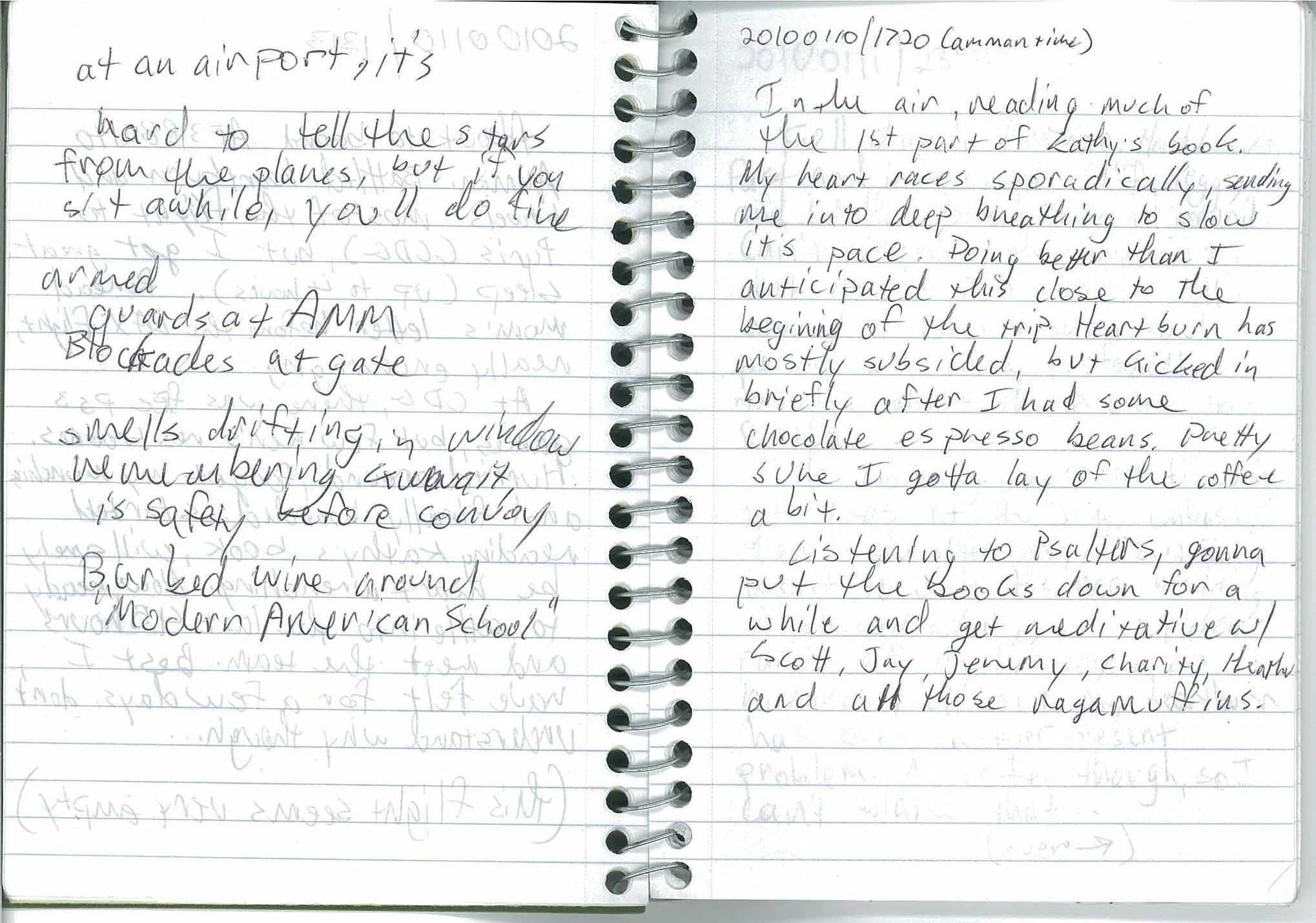 In the air, reading much of the first part of Kathy’s book. My heart races sporadically, sending me into deep breathing to slow its pace. Doing better than I anticipated this close to the beginning of the trip. Heartburn has mostly subsided, but kicked in briefly after I had some chocolate espresso beans. Pretty sure I gotta lay off the coffee a bit.