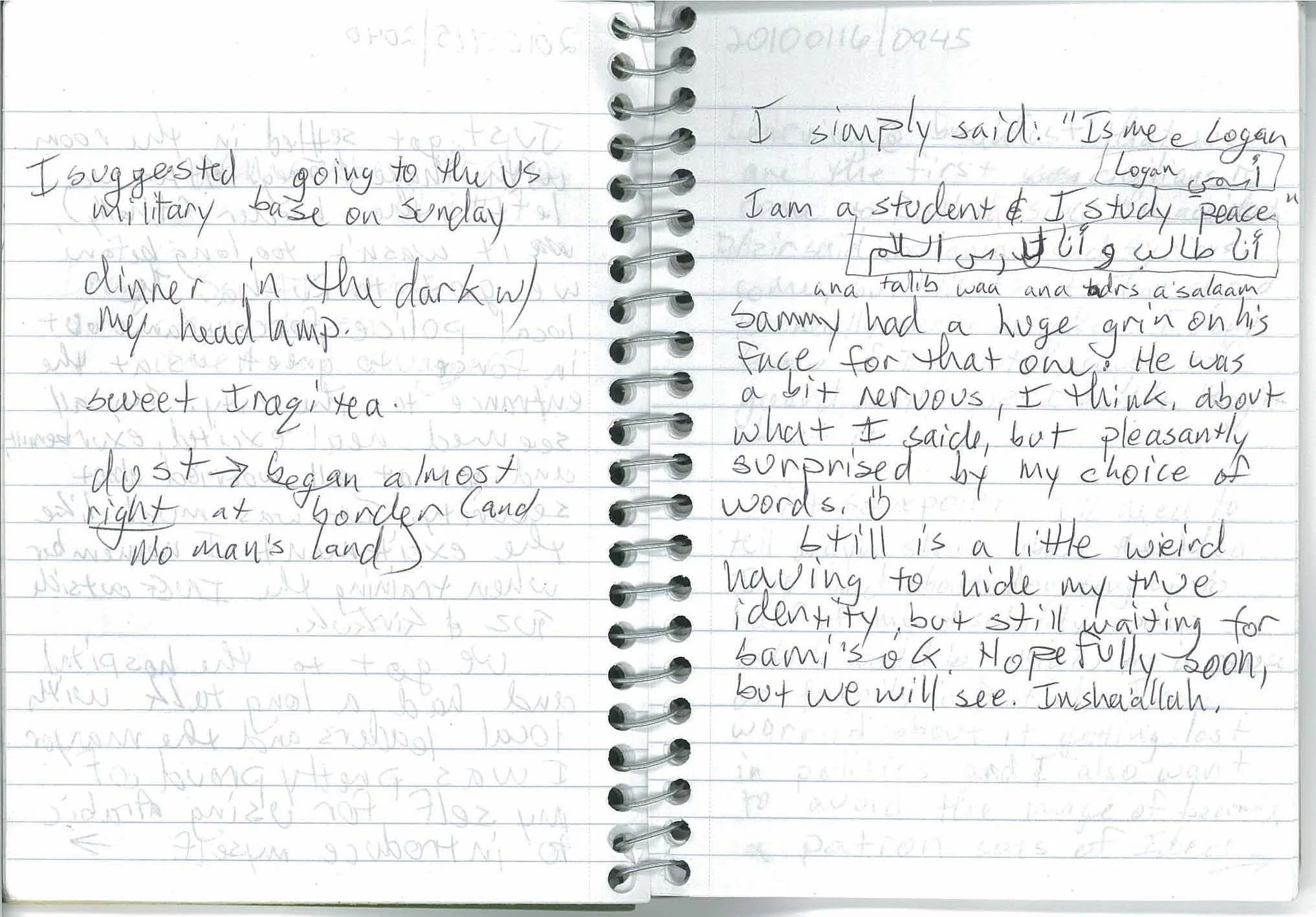 I simply said “ismee Logan, ana talib waa ana tadrs a’salaam.” Sammy had a huge grin on his face for that one. He was a bit nervous, I think, about what I said, but pleasantly surprised by my choice of words. :-)