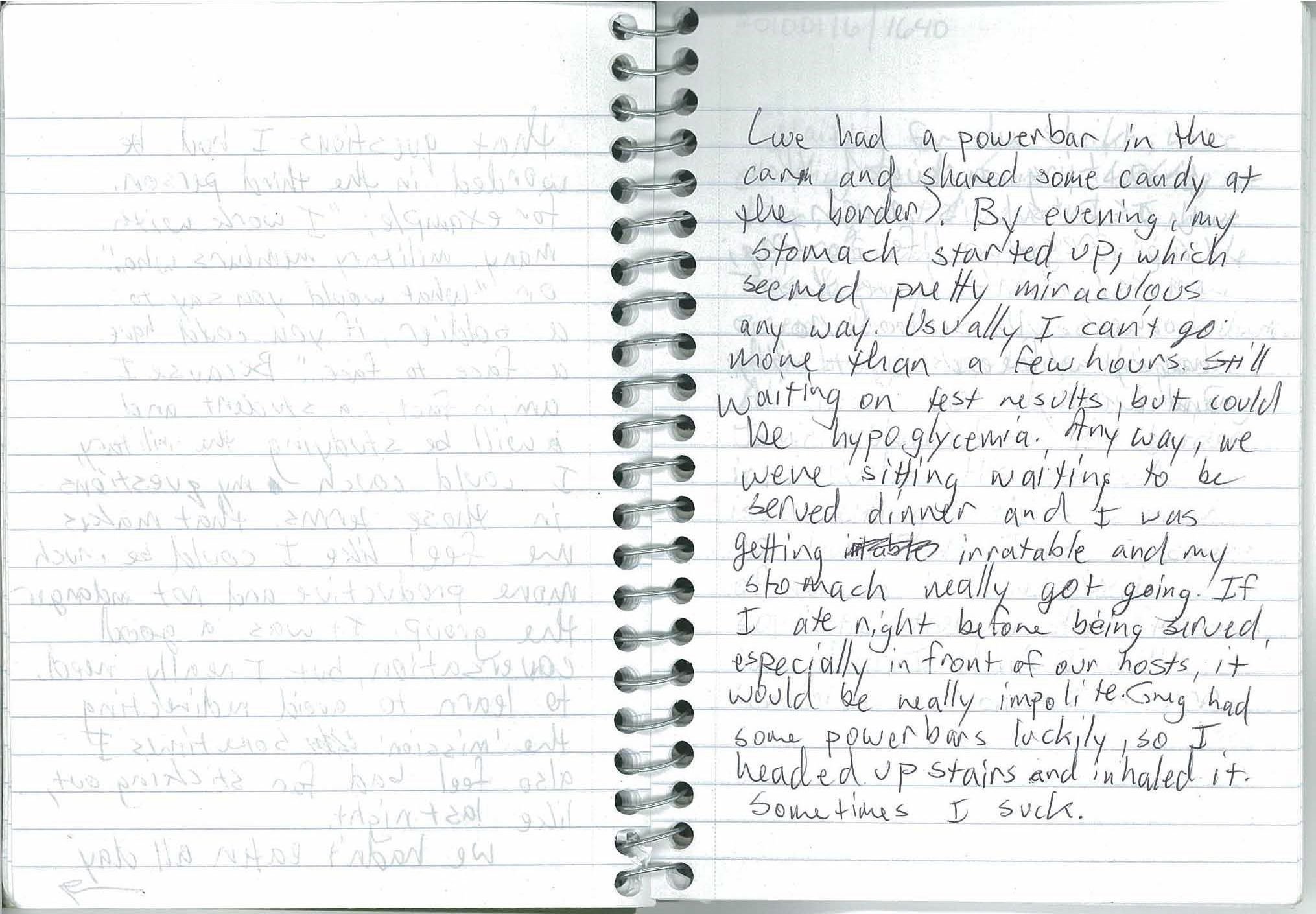 ...(we had a Power Bar in the car and shared some candy at the border). By evening, my stomach started up, which seemed pretty miraculous anyway. Usually I can’t go more than a few hours. Still waiting on test results, but could be hypoglycemia. Anyway, we were sitting waiting to be served dinner and I was getting irritable and my stomach really got going. If I ate right before being served, it would be really impolite. Greg had some Power Bars luckily, so I headed upstairs and inhaled it.