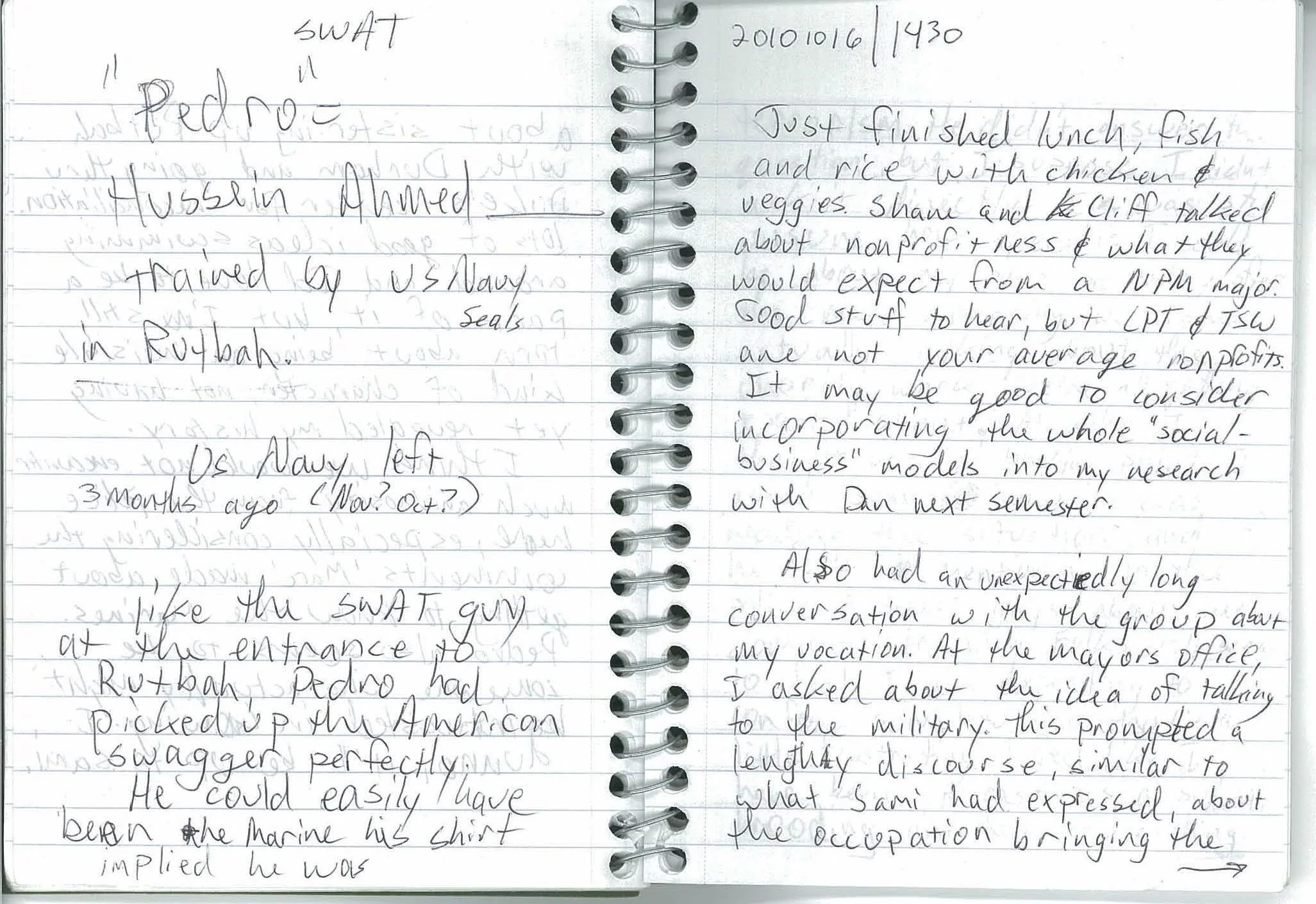 Pedro = Hussein Ahmed ______, trained by Navy SEALS in Rutba.