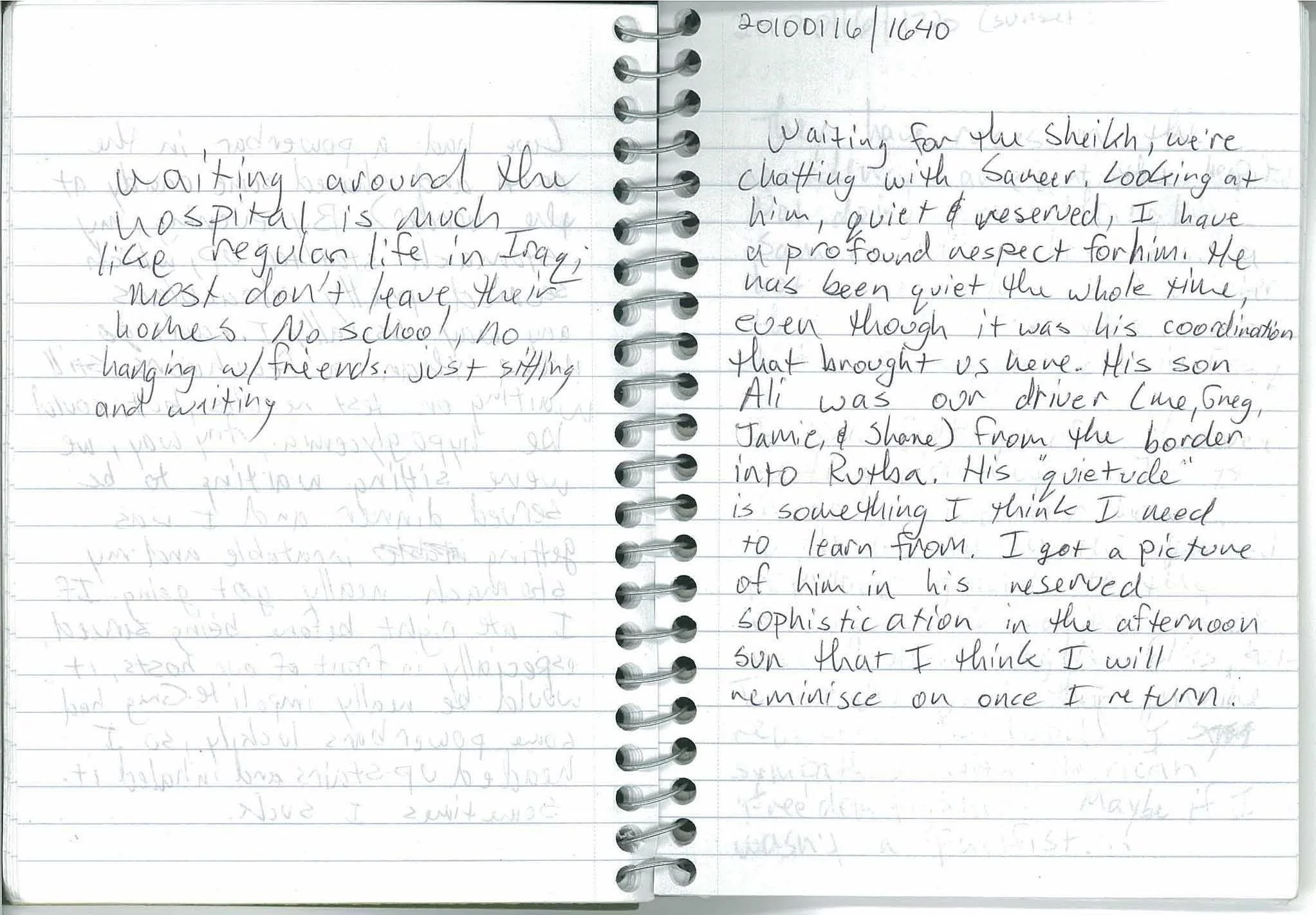 Waiting for the Sheikh, we’re chatting with Sameer. Looking at him, quiet and reserved, I have a profound respect for him. He has been quiet the whole time, even though it was his coordination that brought us here. His son was our driver (me, Greg, Jamie, and Shane) from the border into Rutba. His “quietude” is something I think I need to learn from. I got a picture of him in his reserved sophistication in the afternoon sun that I think I will reminisce on once I return.