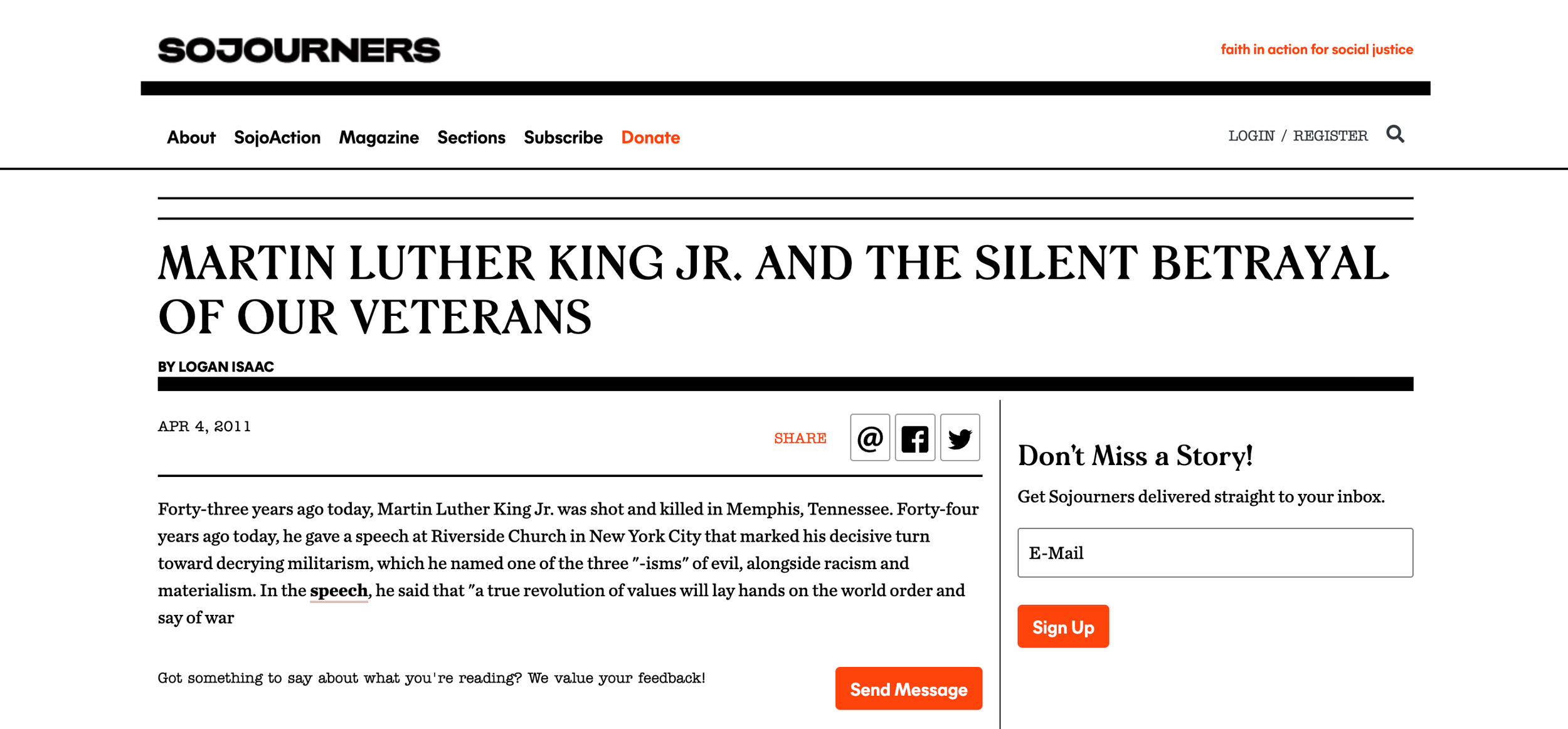 *Originally published by Sojourners on April 4, 2011 at http://sojo.net/blogs/2011/04/04/martin-luther-king-jr-and-silent-betrayal-our-veterans. I had them remove it in 2025.