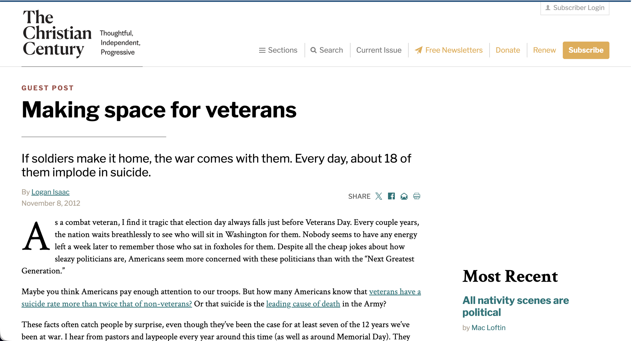 ChristianCentury: Making space for veterans